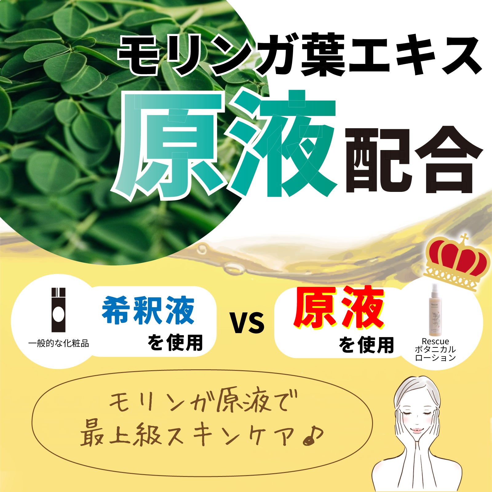希釈液を配合することが多いなか、モリンガの葉から抽出したエキスを原液配合。モリンガ農家が作る基礎化粧品だからこそ、モリンガのパワーを強く感じてほしいという思いで調合しました。