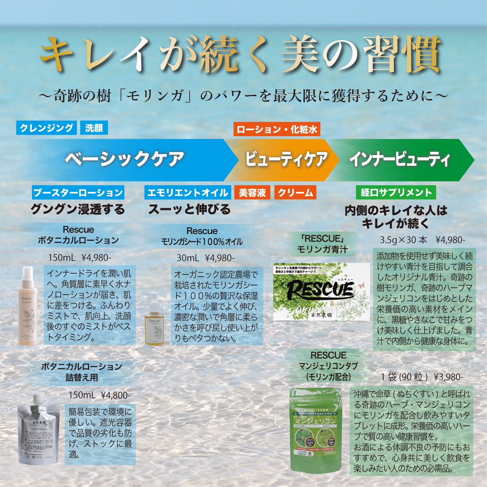 アロエベラ液汁、オキナワモズクエキスなど南国自然素材をふんだんに使用しています。